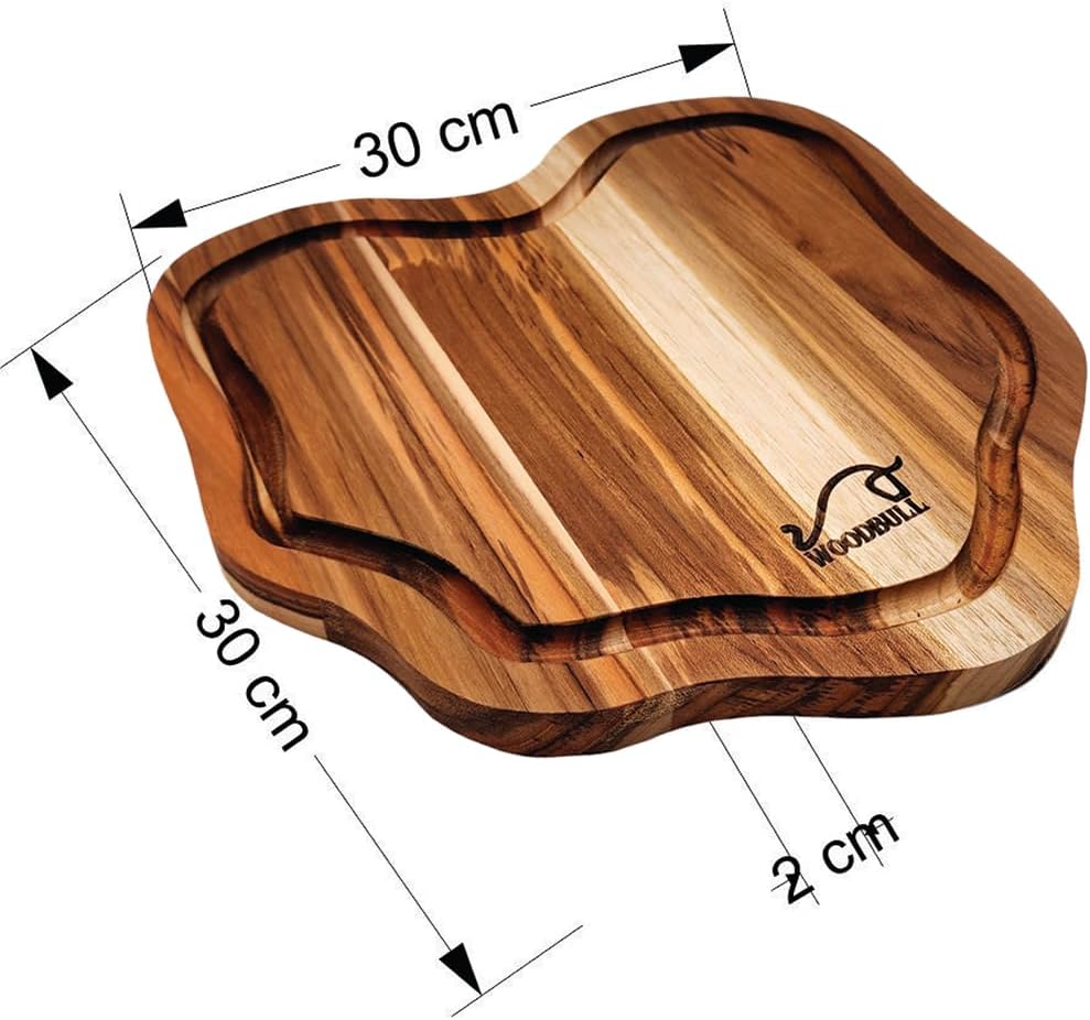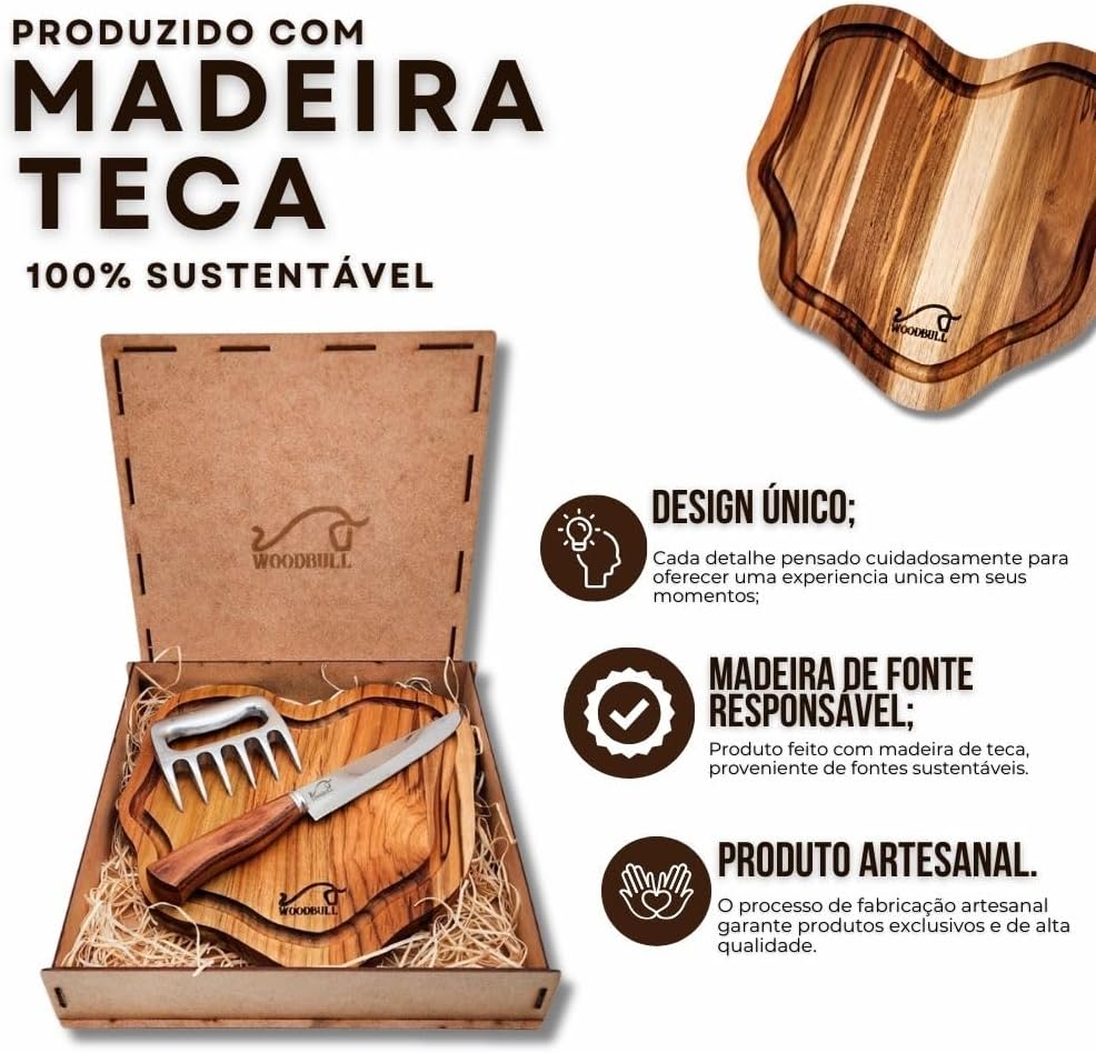 • Produzida com madeira Teca nobre, altamente resistente e durável, com um acabamento impecável, ideal para cortes e apresentações sofisticadas.