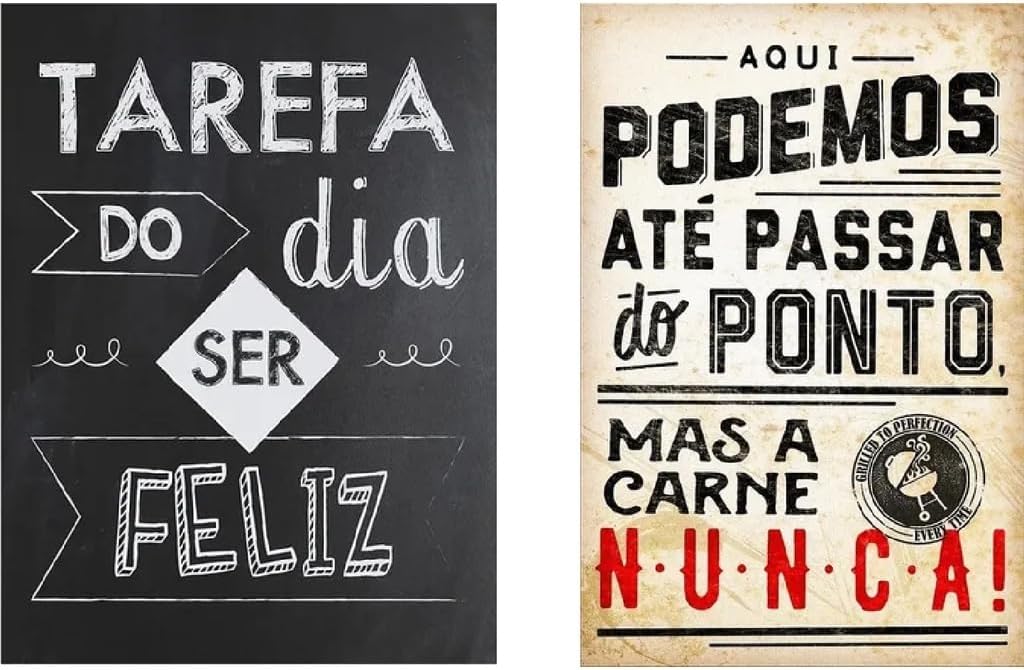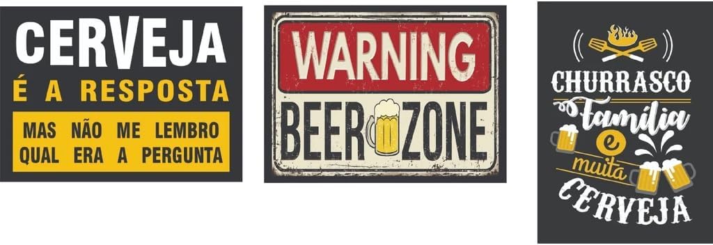 NFORMAÇÕES GERAIS - KIT 7 PLACAS PARA ÁREA CHURRASQUEIRA Que tal deixar a sua área de lazer mais aconchegante e estilosa com essas lindas e engraçadas placas em Mdf? Centenas de clientes já compraram com a gente e decidiram dar mais cor àquele espaço onde passarão grandes momentos junto aos amigos e às cervejas!!! Quer deixar a sua área gourmet com a sua cara? Então escolha 9 modelos das nossas placas decorativas para área de churrasco e vamos enviar para você! IMPRESSÃO - Nossa impressão é de alta qualidade e durabilidade, feita em papel couché 240g sobre Mdf.. O QUE VAI NO PEDIDO - 7 Peças 21x29 cm - Fita dupla face recortada e pronta para colagem dos quadros na parede.