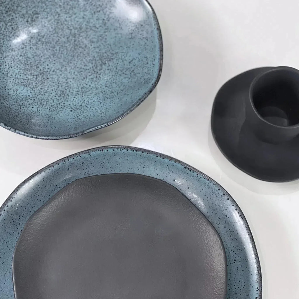 Nesta combinação a imensidão celeste salpicada de estrelas da linha  se combina com a escuridão fosca e profunda da linha, resultando em um aparelho de jantar sofisticado e cheio de personalidade.