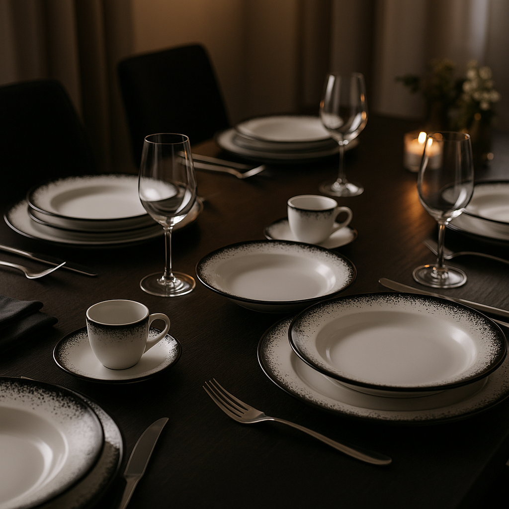 Serviço de Jantar Chá e Café Névoa Preto - Serve 06 pessoas